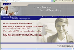 EBBE networking group "EBBE: Expanding Business Beyond Expectations" is a Springfield, Massachusetts, based networking group. The group meets for breakfast every week, and each member is a business owner who is trying to promote his/her business. The idea of the group, similar to all networking groups, is to promote each other's business among members in the group. Would you like to "get the word out" and inform a larger clientele about the quality services you have to offer? Contact EBBE and join this dynamic networking group. Design Objectives Abgraphic created a visually appealing, marketing site