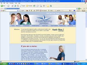 Excel Nursing Services To provide the highest quality, professional health care services to meet the needs of our clients, associates and the individuals we serve. Excel Nursing Services was founded to provide families, human service agencies, long term care facilities, hospitals, schools, assisted living and other health care facilities a continuum of services from professional staffing to educational management consulting services. You can be assured that Excel Nursing Services is committed to helping individuals and families find the right solutions to meet their specific health care or residential needs. Design Objectives Abgraphic.net, in collaboration with Multi Media Impact, was asked to redesign the Excel Nursing Services website by the owner, Rebecca Paquette, RN. The logo was modified and placed in a Flash movie. The look of the website was updated to make it look contemporary, with modern, high quality images. The "Open Positions" page was designed to be easily modified by the Excel Nursing Services staff. The dropdown navigation was also upgraded and made more logical. |