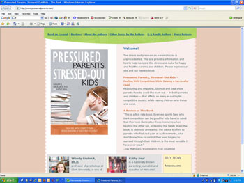 Pressured Parents, Stressed-Out Kids - Dealing With Competition While Raising a Successful Child "This is a first rate book. Even we sports fans who think competition can be good for kids have to admit that this book illuminates those moments when beating the other kid, or besting the family down the block, is distinctly unhealthy. The advice it offers to parents who feel real pain at such moments, who don't know how to control their own longing to succeed through their children, is the most sensible I have ever read." Design Objectives ABgraphic.net was asked to design a website for the promotion of a book by two authors. It's an informational site that includes an excerpt of the book, reviews, information about the authors, a Q & A with the authors, and a press release. The hompage includes the book jacket and purchasing information with links, as well as information about the authors. This design, although simple, is custom-made to match the book jacket, and is attractive. |